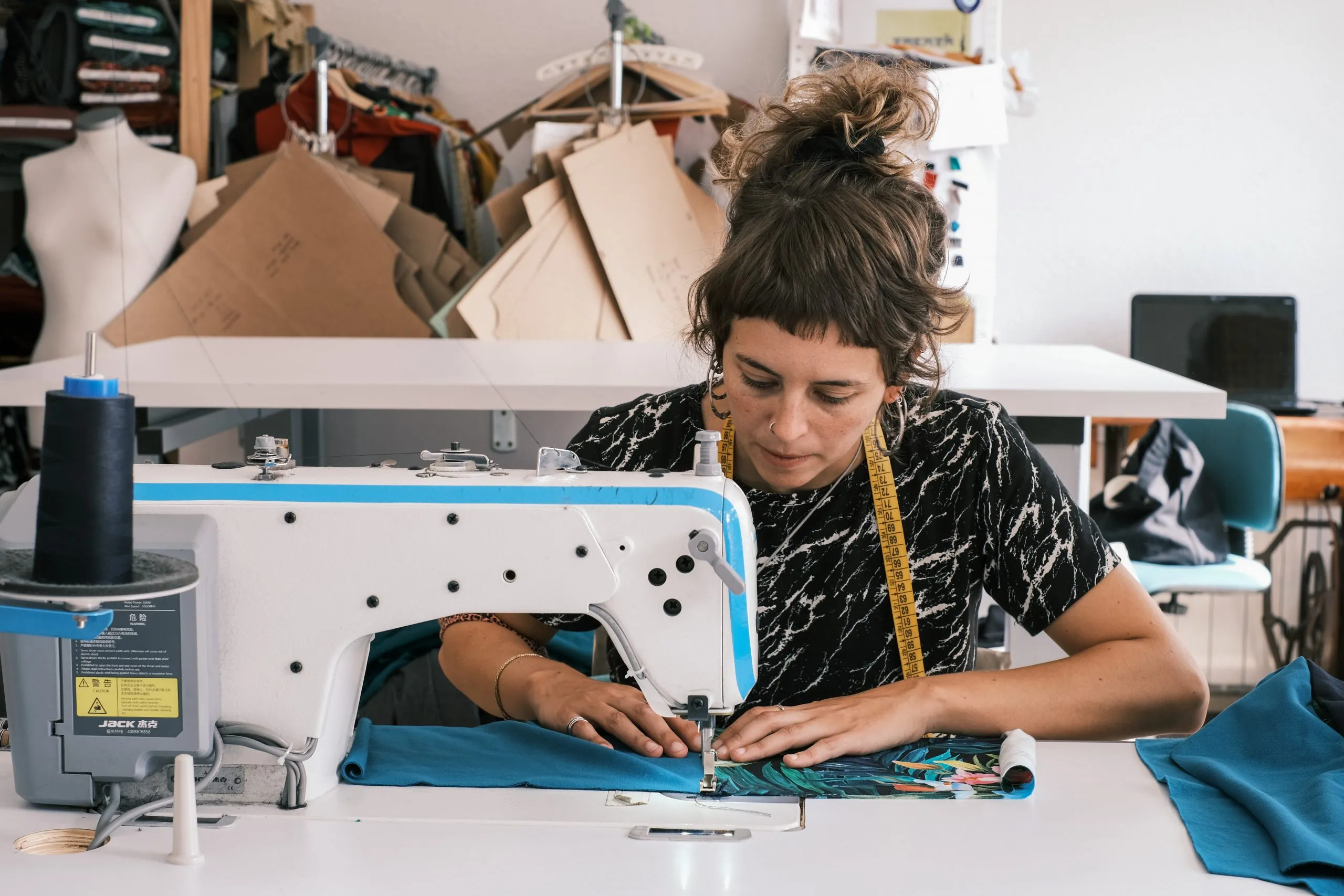 Tot el procés de tall i confecció es realitza al taller. Confecció de proximitat amb un alt nivell de control de qualitat sobre les peces que fabrico.
