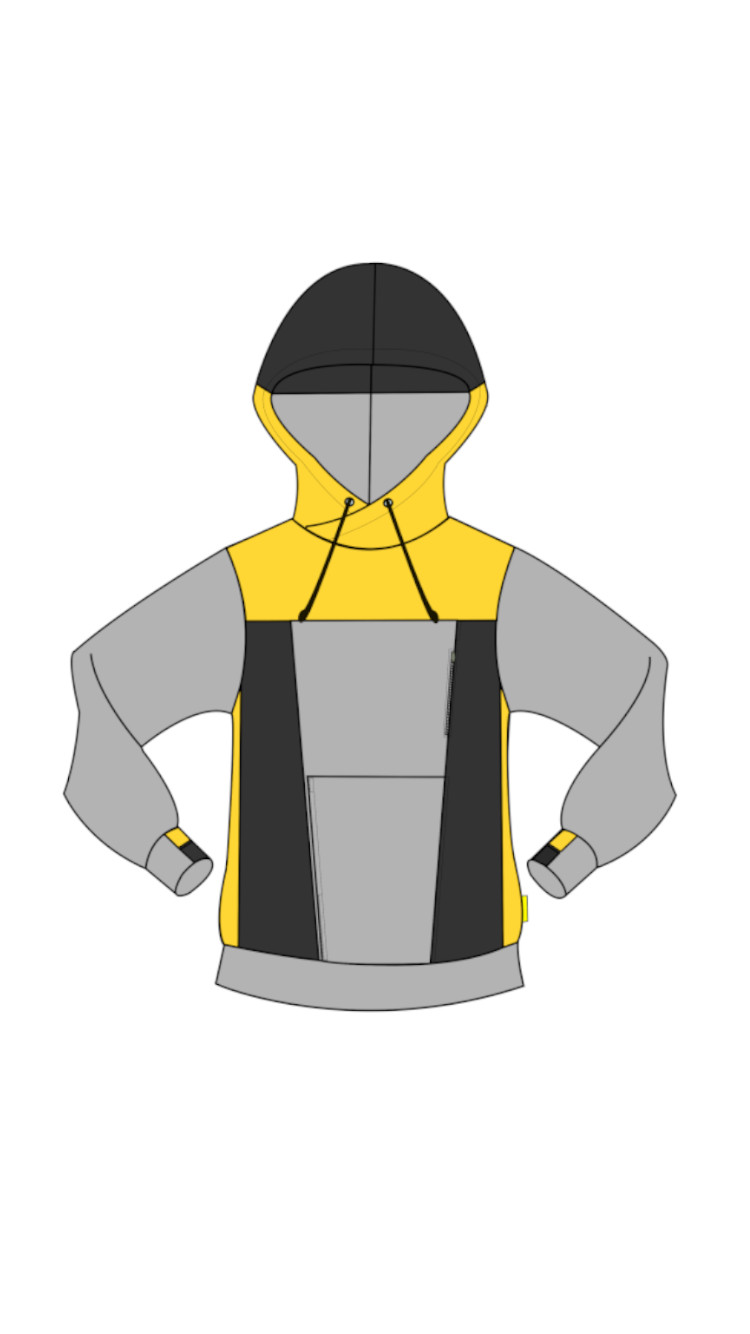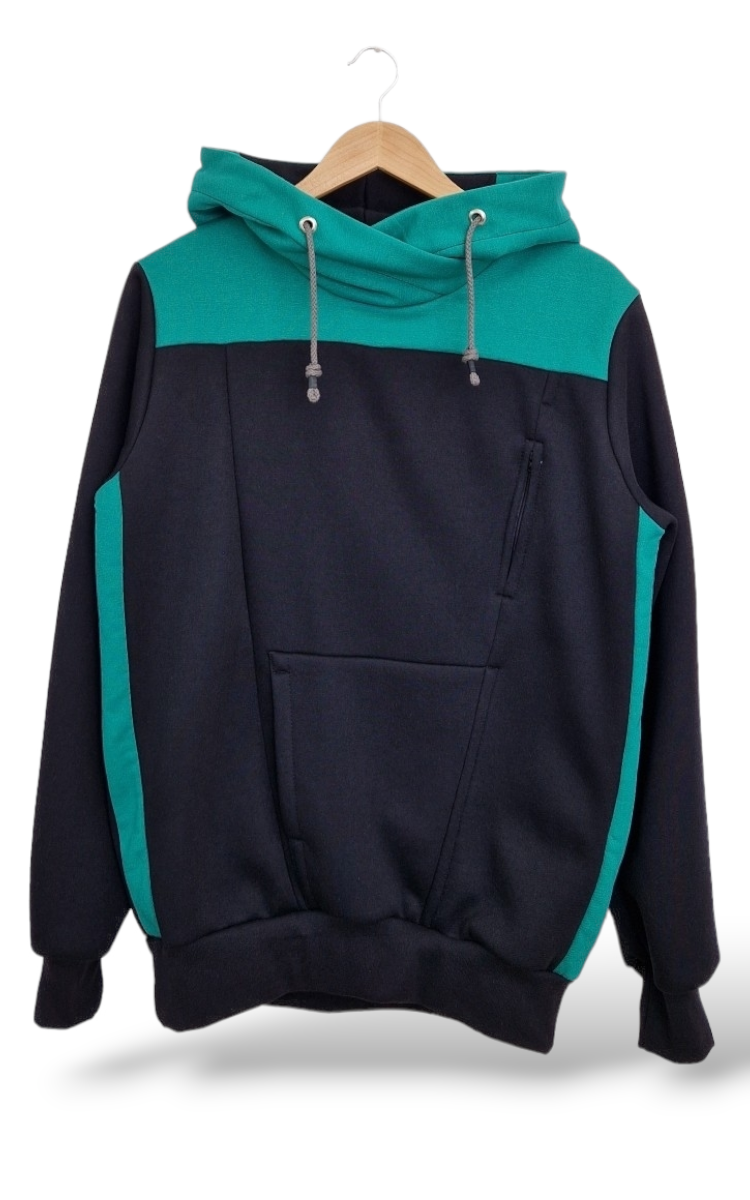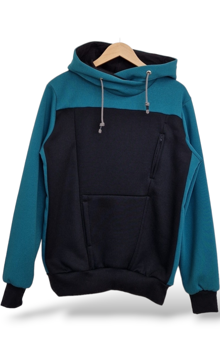 Dessuadora amb caputxa que consta d’una petita butxaca amb cremallera al pit,
