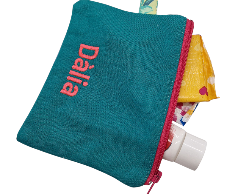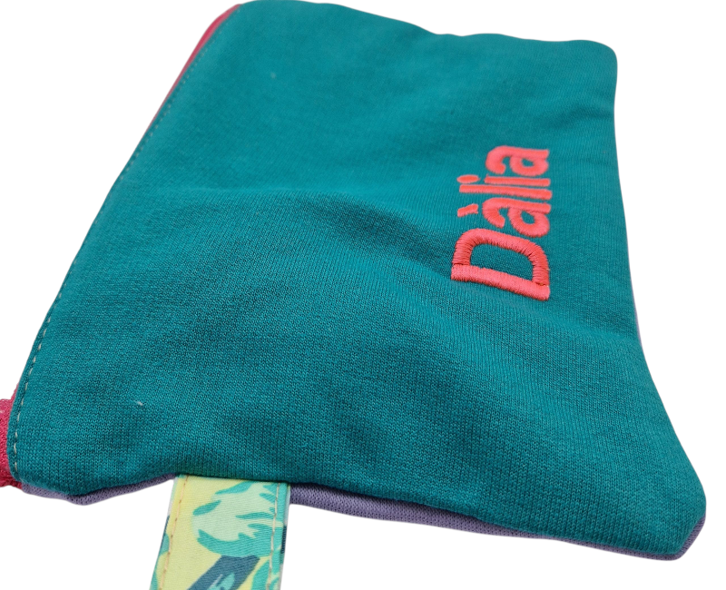 Ahora puedes elegir entre todas las telas que tengo en stock y combinarlas como quieras. También se puede bordar algo: tu nombre, tus iniciales, una palabra especial… (coste adicional de 3,80 €).