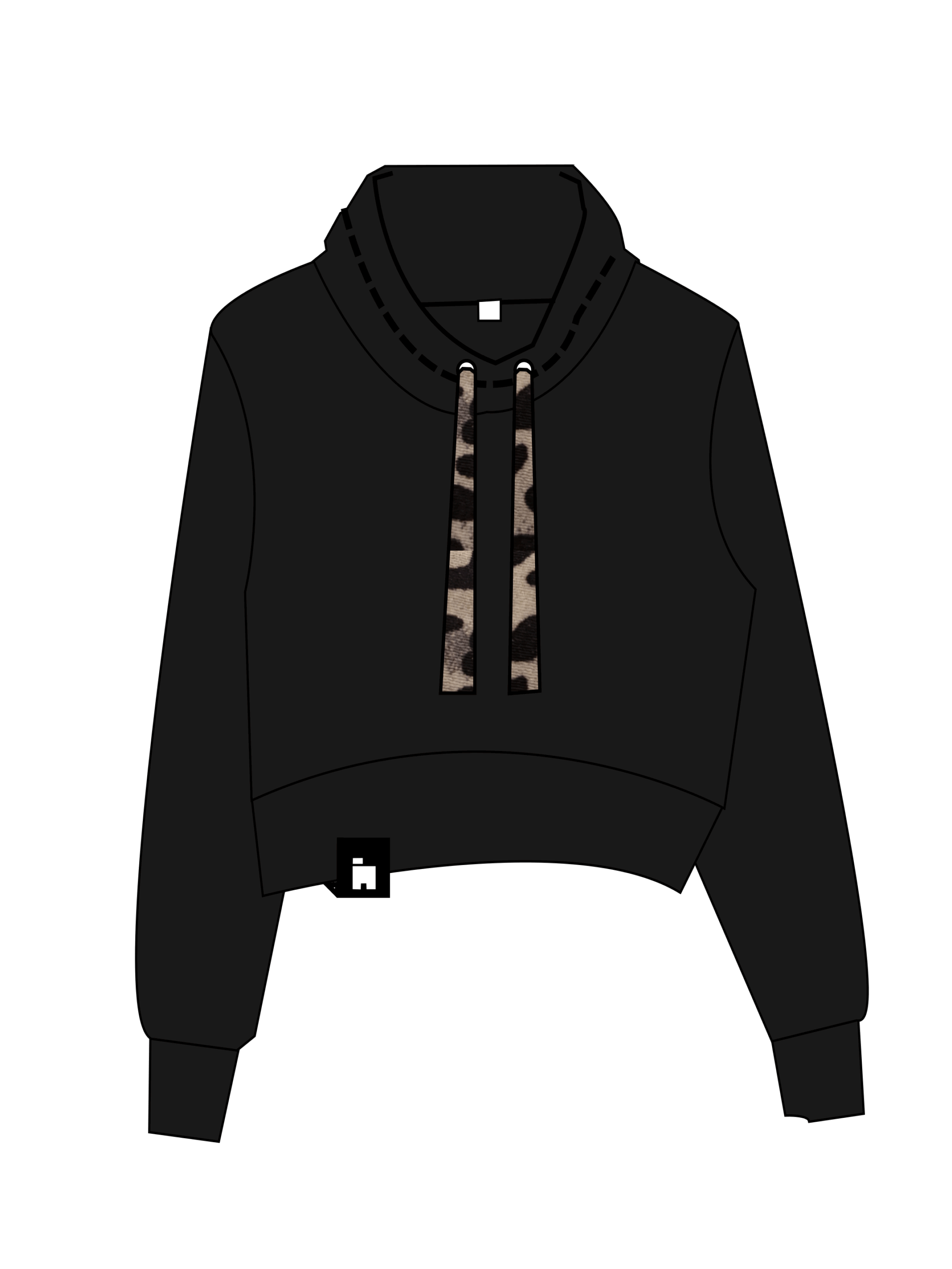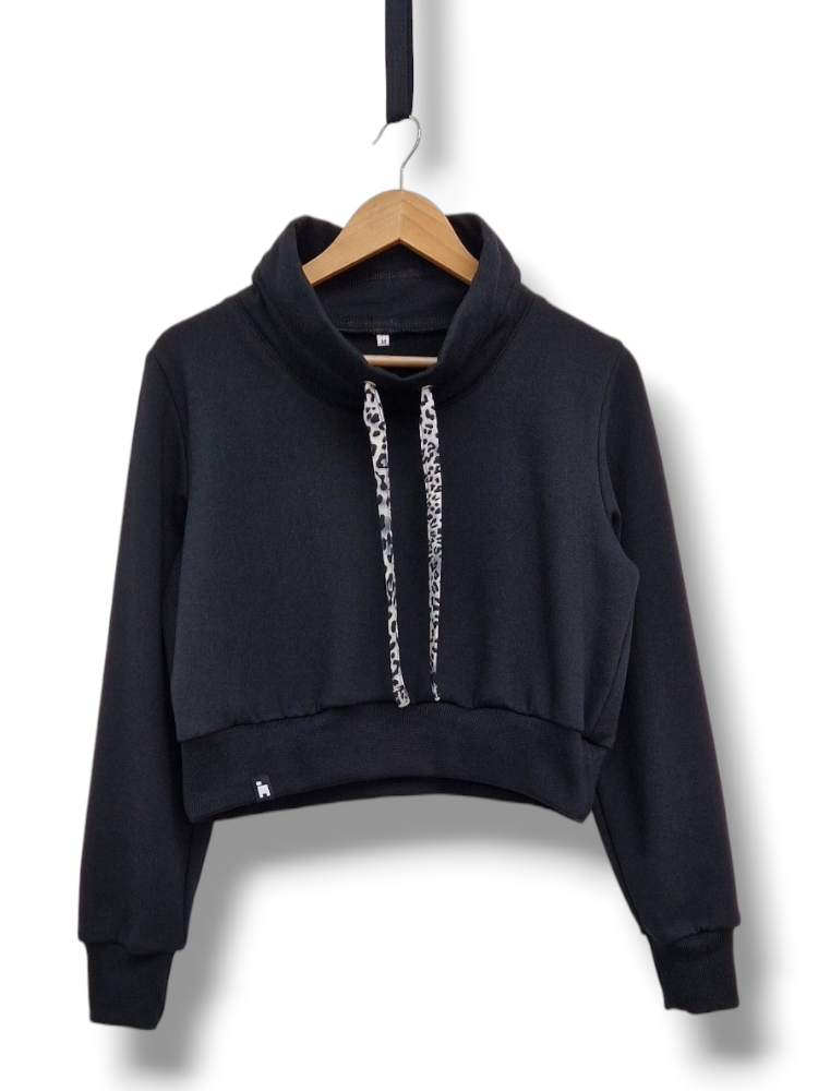 Jersei amb sisa. Consta d’un coll alt ample amb ullals i cinta estampada. Tallatge curt i acabat amb punys.