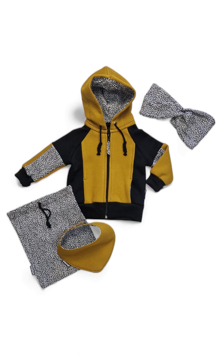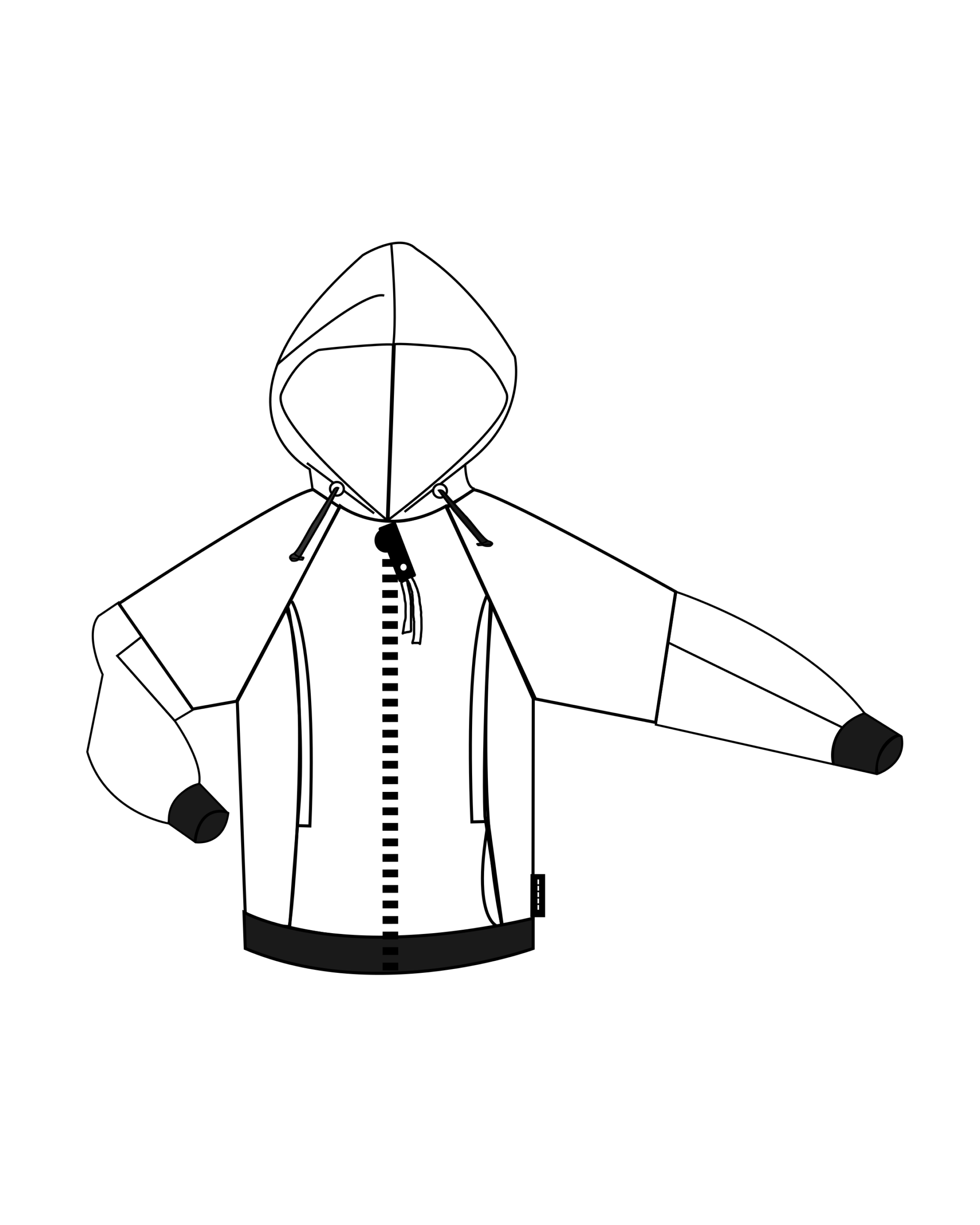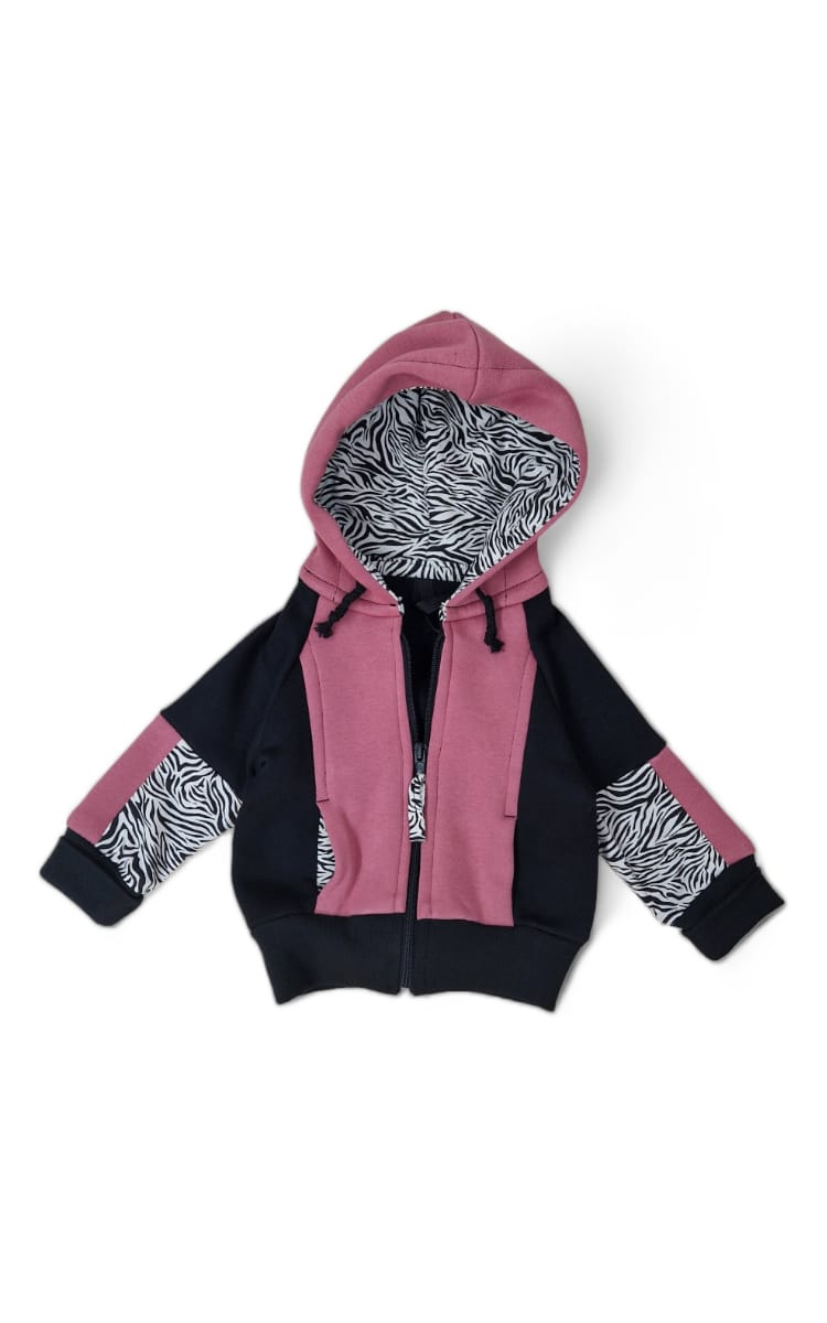 Mini dessuadora amb caputxa, i butxaques centrals. Obertura amb cremallera i acabats amb puny.