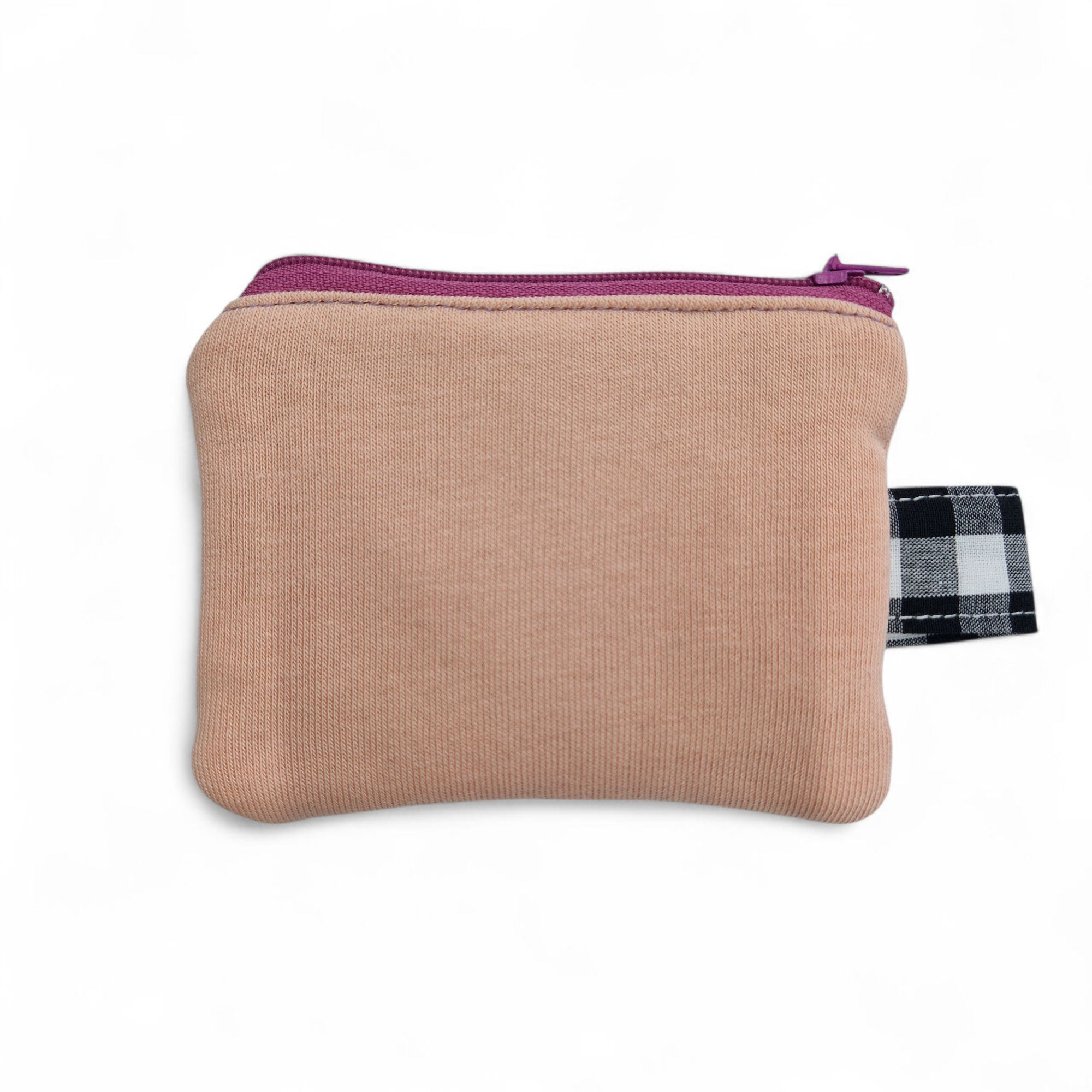 Els trossos que sobren en tallar les nostres dessuadores es transformen en moneders únics i sostenibles. Forrats per dins amb tela de vichy negra i amb una pràctica tireta lateral perquè els puguis penjar on vulguis.